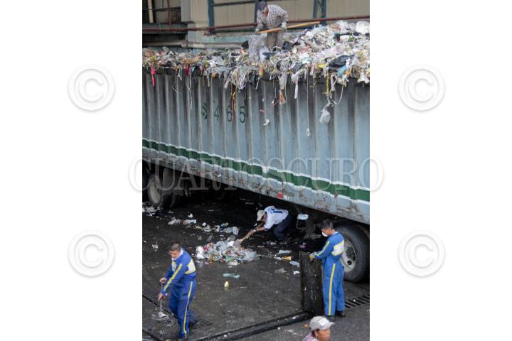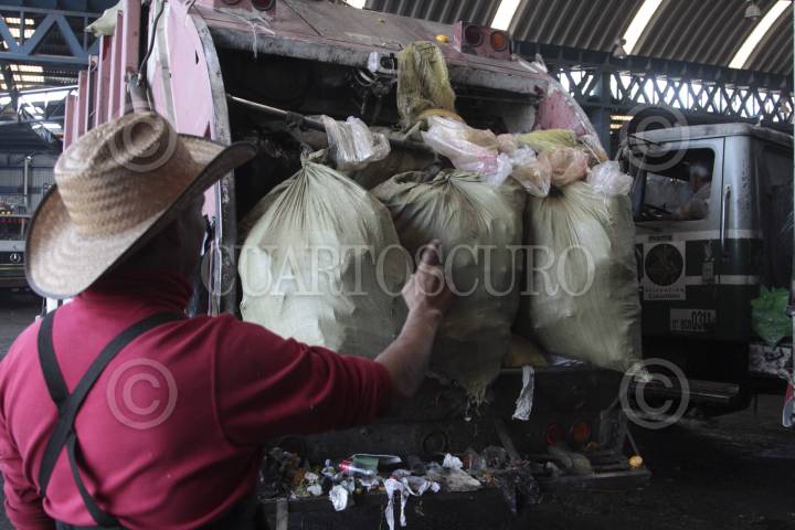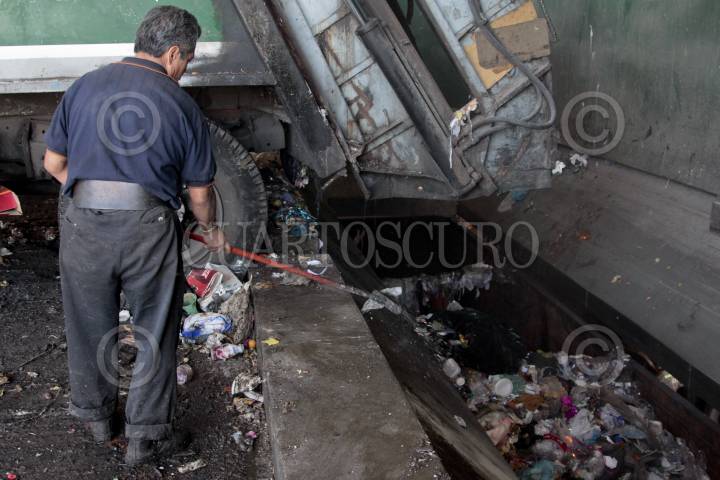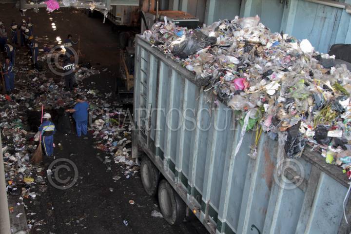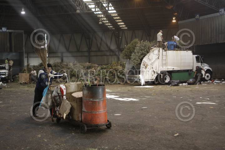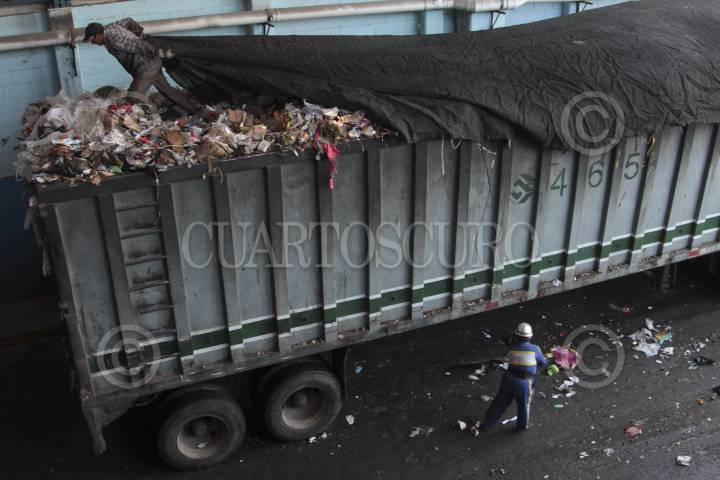 MÉXICO, D.F., 27DICIEMBRE2011.- La estación de Transferencia de la delegación Cuauhtemoc en Calzada La viga en su cruce con Eje 3 Sur, en los últimos día ha recibido decenas de camiones donde trabajadores los descargan y llenan los trailers contenedores de basura. La situación de los desechos de la metropoli ha sufrido un re-acomodo debido al cierre del bordo poniente pero esto solo es temporal en lo que se estabiliza aseguran los camioneros y trabajadores del lugar. FOTO: ENRIQUE ORDÓÑEZ/CUARTOSCURO.COM