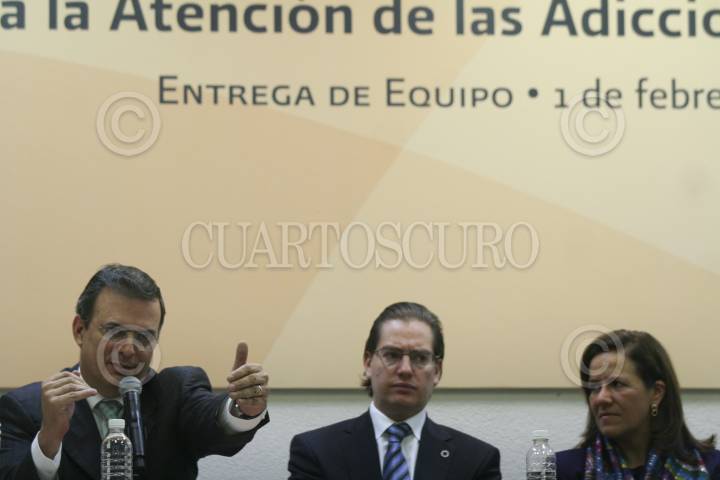 MÉXICO, D.F., 01FEBRERO2012.- Marcelo Ebrard, jefe de gobierno del D.F.; Salomón Chertorivski Woldenberg, Secretario de Salud; y Margarita Zavala, presidenta del DIF; acudieron a la entrega del equipo que conforma la "Red Nacional de Transferencia de Tecnología para la Atención de las Adicciones" en el Centro Nueva Vida México-España. FOTO: IVÁN STEPHENS/CUARTOSCURO.COM