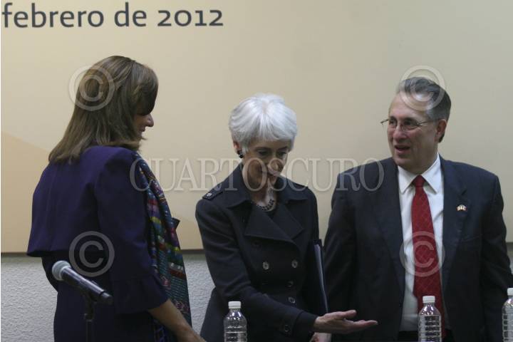 MÉXICO, D.F., 01FEBRERO2012.- Margarita Zavala, presidenta del DIF; Wendy Sherman, subsecretaria de asuntos políticos del Departamento de Estado de los Estados Unidos; y Anthony Wayne, embajador de Estado Unidos en México; acudieron a la entrega del equipo que conforma la "Red Nacional de Transferencia de Tecnología para la Atención de las Adicciones" en el Centro Nueva Vida México-España. FOTO: IVÁN STEPHENS/CUARTOSCURO.COM