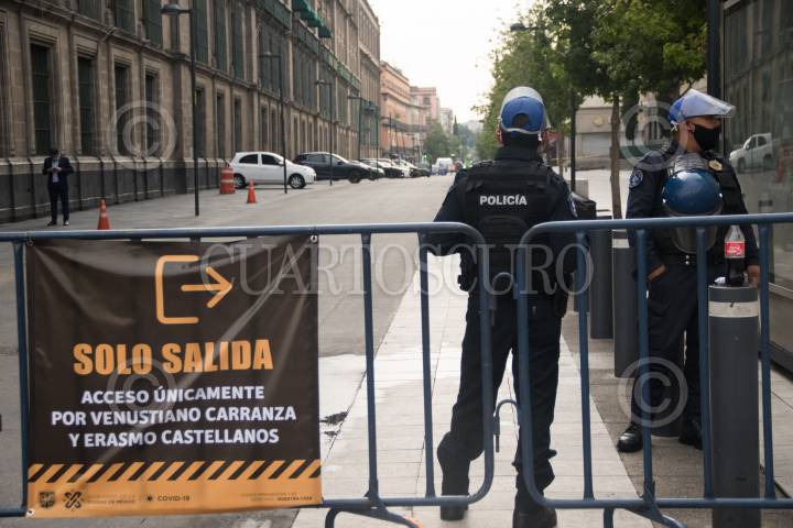 Acceso restringido al primer cuadro de la Ciudad de México. Cerradas, solo personal autorizado las calles de Corregidora y Moneda. Las estaciones del metro Zócalo y Allende, para evitar aglomeraciones importantes de personas.