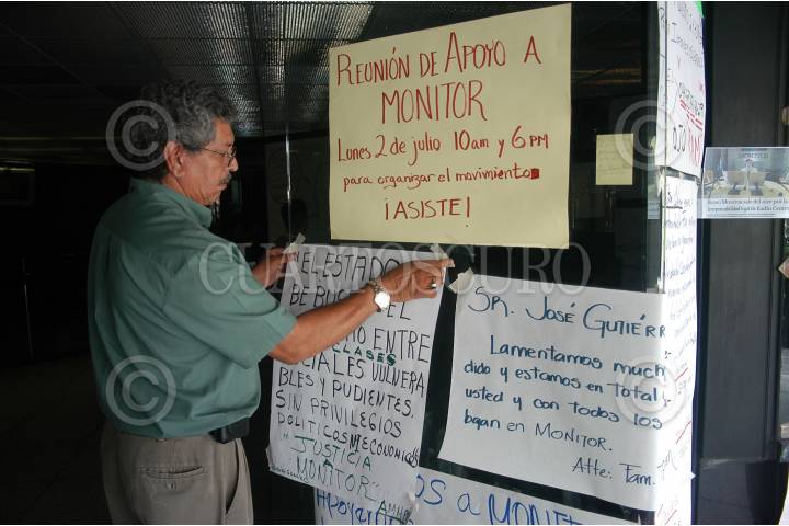 MÉXICO D.F. 03JULIO2007.-Simpatizantes del periodista José Gutíerrez Vivo, muestran su apoyo con pancartas colocadas a las afueras de las instalaciones del Diario Monitor y recolectan firmas para exir que regrese la transmición de su noticiero radiofonico. FOTO: GUILLERMO PEREA/CUARTOSCURO.COM
