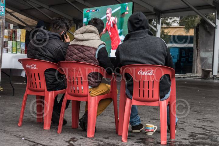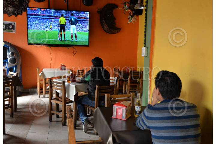 TOLUCA, ESTADO DE MÉXICO, 17JUNIO2018.- En negocios de comida, tiendas de electrodomésticos y otros locales fue seguida la transmisión del primer partido de la Selección Mexicana en el Mundial de Rusia 2018, enfrentando a Alemania, e imponiéndose con un marcador final de 1-0. FOTO: ARTEMIO GUERRA BAZ /CUARTOSCURO.COM