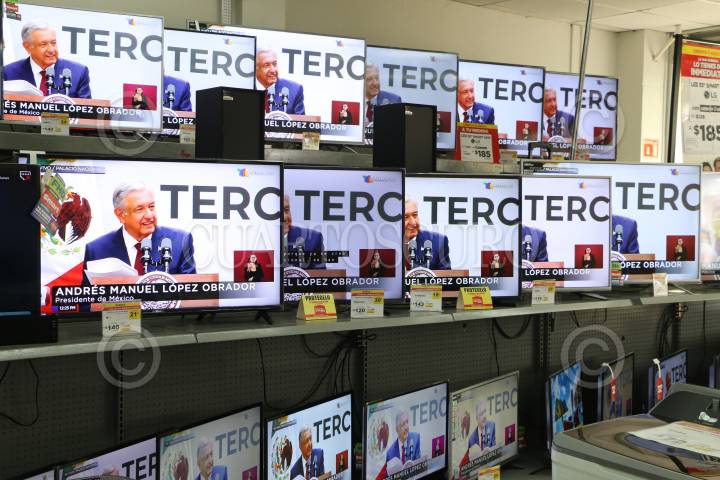 VILLAHERMOSA, TABASCO, 01SEPTIEMBRE2019.- En los televisores de una tienda departamental se observa el primer informe de gobierno del Presidente de México, Andrés Manuel López Obrador. FOTO: EDGAR JASSO /CUARTOSCURO.COM