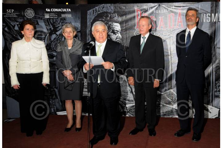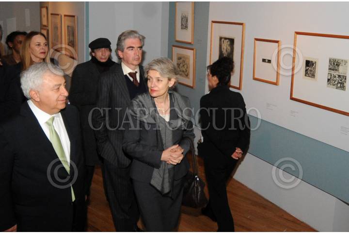 MÉXICO, D.F., 15MARZO2013.- María Cristina García Cepeda, directora del INBA, Irina Bokova, directora general de La Organización de las Naciones Unidas para la Educación, Emilio Chuayffet, secretario de Educación Pública y Roberto Hernández Ramírez, presidente del Consejo de Administración del Banco Nacional de México, recorrieron el día de ayer la exposición "José Guadalupe Posadas. Transmisor" en el Museo Nacional de Arte. FOTO: ARTURO LÓPEZ /CUARTOSCURO.COM