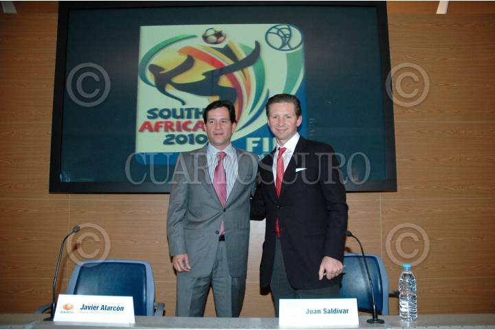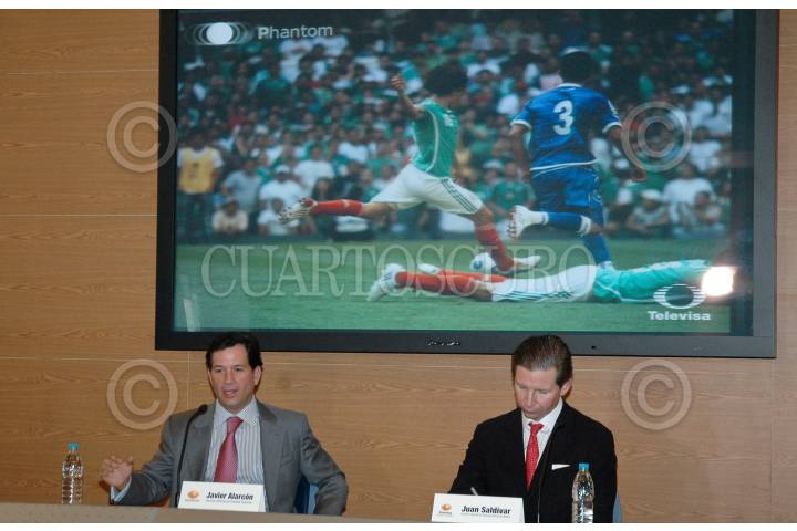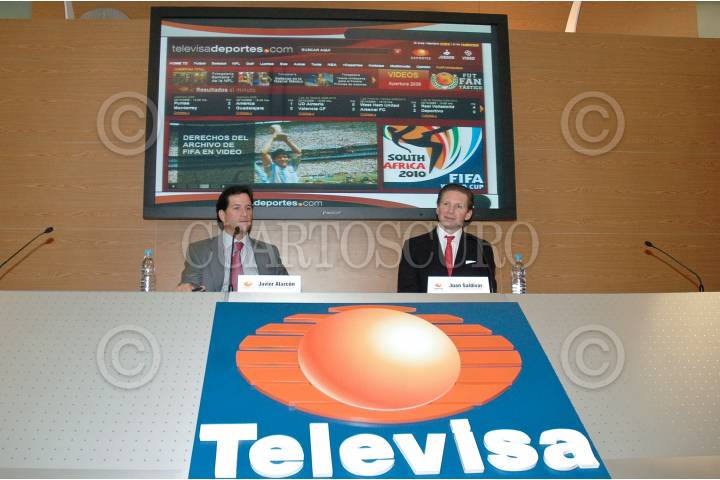 MÉXICO, D.F., 02DICIEMBRE2009.- Javier Alarcon, director editorial de Televisa Deportes y Juan Saldivar, director de Televisa Interactive Media durante la presentación del nuevo formato de televisadeportes.com que transmitirá por primera vez, en vivo y en exclusiva la Copa Mundial de la FIFA Sudafrica 2010. FOTO: RODOLFO ANGULO/CUARTOSCURO.COM