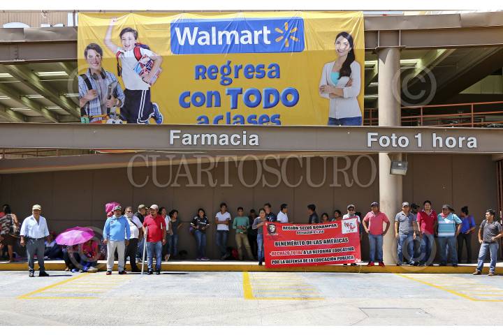 TUXTLA GUTIÉRREZ, CHIAPAS, 08AGOSTO2016.- Maestros pertenecientes a la Coordinadora Nacional de los Trabajadores de la Educación (CNTE) bloquearon los accesos de las tiendas de autoservicio trasnacionales como parte de sus acciones en contra de la Reforma Educativa. FOTO: JESÚS GARCÍA /CUARTOSCURO.COM