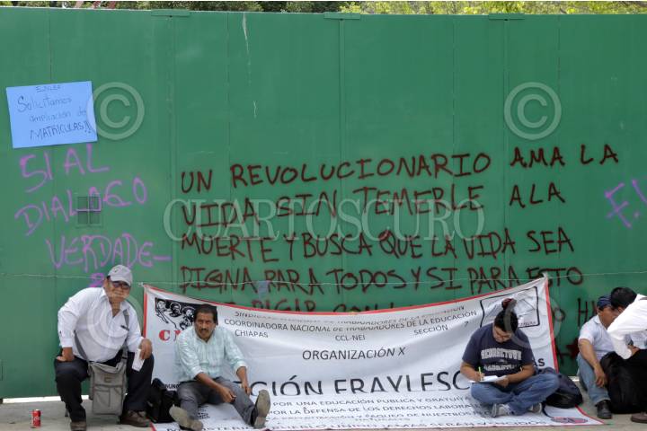 TUXTLA GUTIERREZ, CHIAPAS, 15AGOSTO2016.- Maestros pertenecientes a la Coordinadora Nacional de Trabajadores de la Educación (CNTE) tomaron a primera hora de este lunes las instalaciones de la "Torre Chiapas" y la Secretaría de Educación Pública en la capital chiapaneca, esto en manifestación a su lucha contra la reforma educativa. FOTO. JESÚS GARCÍA /CUARTOSCURO.
