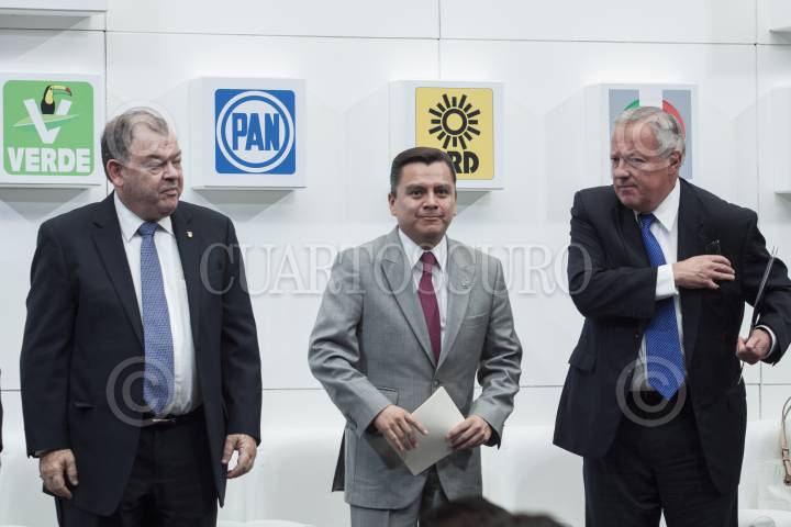 CIUDAD DE MÉXICO, 05ABRIL2017.- Gustavo de Hoyos, presidente de la Confederación Patronal de la República Mexicana (COPARMEX); Eduardo Bohórquez, director general de Transparencia Mexicana, y Juan E. Pardinas, director general del Instituto Mexicano para la Competitividad (IMCO), ofrecieron una conferencia de prensa para presentar los avances del proyecto "Semáforo anti-corrupción", el cual monitorea a los estados en la implementación de los Sistemas Locales Anticorrupción. FOTO: MARIO JASSO /CUARTOSCURO.COM