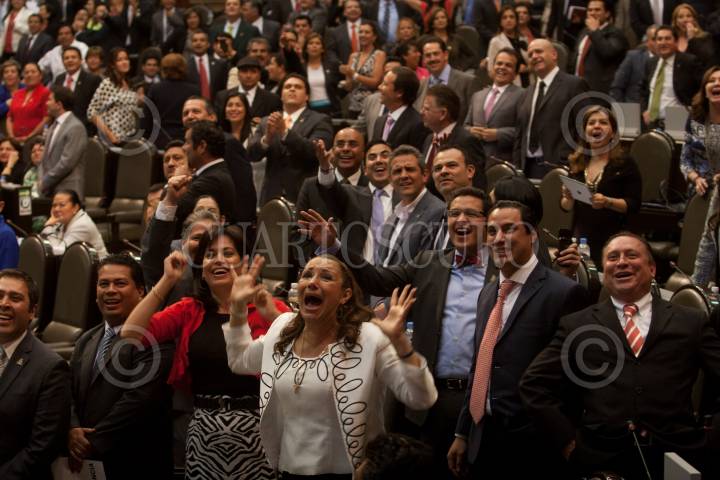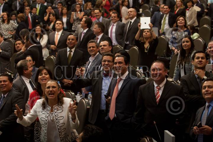 MÉXICO, D.F, 19MARZO2013.- Luego de una cerrada votación entre priístas, ecologistas y aliancistas contra panistas, perredistas, petistas, aliados para votar a favor de que la ley de transparencia se aplique al Presidente de la República, durante la sesión ordinaria de esta tarde. FOTO: JUAN PABLO ZAMORA /CUARTOSCURO.COM