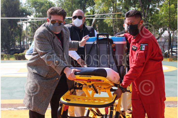 MÉXICO, D.F., 03NOVIEMBRE2013.- Esta tarde, en un helicóptero del Agrupamiento Cóndores de la Secretaría de Seguridad Pública del Distrito Federal fue trasladado un hígado del hospital Médico de Alta Especialidad de la ciudad de Pachuca Hidalgo al Centro Médico Nacional Siglo XXl de Distrito Federal. FOTO: CUARTOSCURO.COMppp