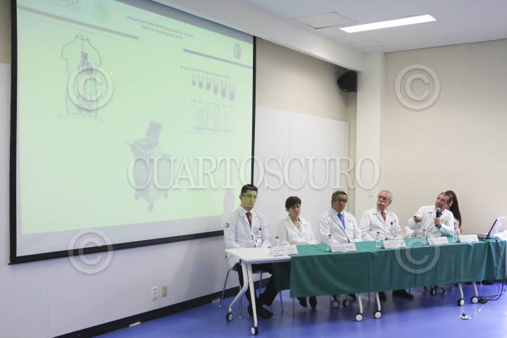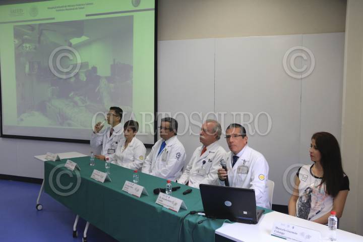 CIUDAD DE MÉXICO, 03OCTUBRE2016.- Víctor Fuentes, jefe de departamento de anestesiología, María de Lourdes, Marroquín Yañez, jefe de servicios de la UTIP, Julio Erdmenger Orellana, jefe de departamento de cardiología, Jaime Nieto, director médico, Alejandro Bolio Cerdán jefe de departamento de cirugía cardiovascular y Maricela Guzmán Colunga, mama de la paciente Dafne Verónica García Guzmán, en conferencia de prensa dieron detalles de la operación quirúrgica y la colocación de un corazón artificial a una niña de 4 años realizado en la unidad de Investigación Hemato-Oncologia del hospital infantil Federico Gómez. FOTO: SAÚL LÓPEZ /CUARTOSCURO.COM