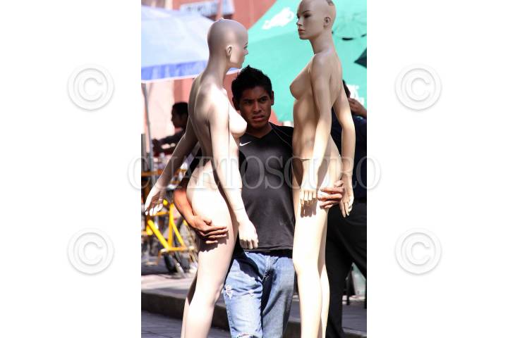 OAXACA, OAXACA 24NOVIEMBRE2009.- La temporada decembrina en puerta, y con ello el aumento en precios por navidad y año nuevoEn la imagen, un trabajador transporta dos maniquíes en el centro histórico FOTO: MAX NÚÑEZ/CUARTOSCURO.COM