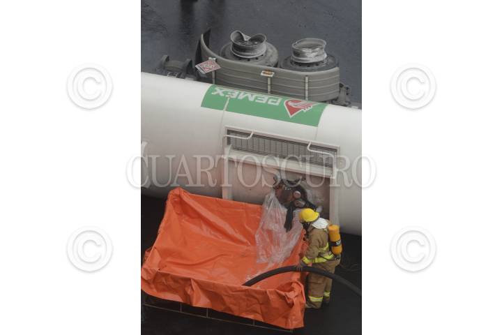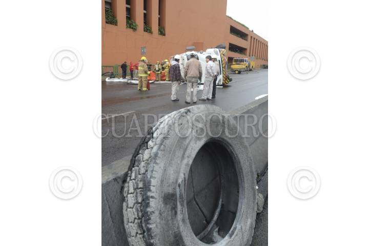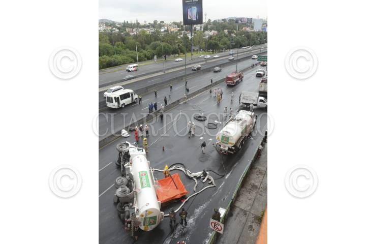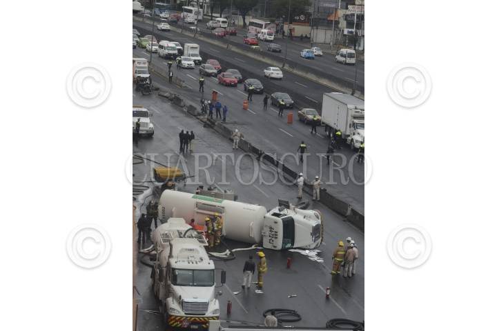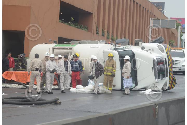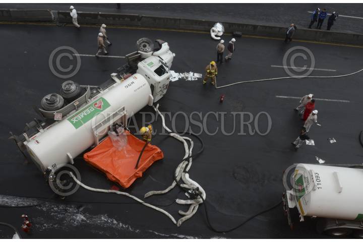 NAUCALPAN, EDOMEX, 22JULIO2015.- Una pipa de Pemex que transportaba gasolina se volcó frente a una tienda departamental sobre la autopista México-Querétaro, a la altura de Plaza Satélite. FOTO: ARMANDO MONROY /CUARTOSCURO.COM