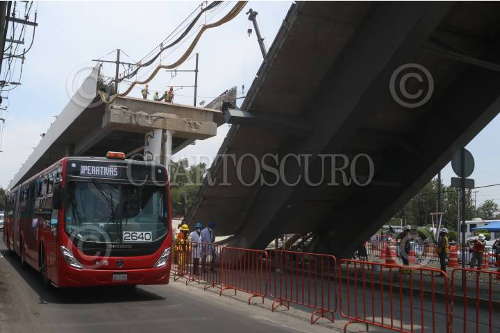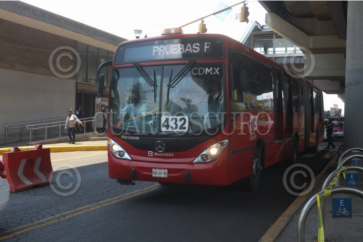 Trabajadores de Gobierno realizan pruebas operativas con las unidades del Metrobús sobre avenida Tláhuac como transporte alternativo después del derrumbe ocasionado en el Metro Olivos
