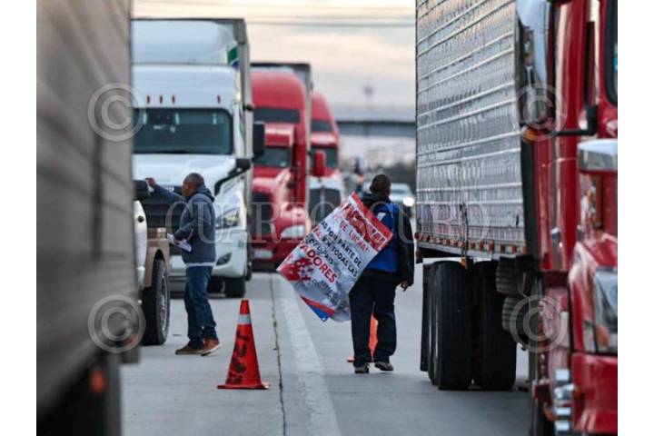 MÉXICO, 05FEBRERO2024.- Transportistas pertenecientes a la ANTAC se manifestaron en diversas casetas del país para exigir al gobierno seguridad en las carreteras ya que denuncian se han incrementando los asaltos al transporte de carga, los inconformes solo se colocaron a lado de las vialidades sin cerrar la circulación, por la tarde se conoció que la Secretaría de Gobernación les envío una propuesta de seguridad a sus demandas. FOTO: ANTAC/CUARTOSCURO.COM