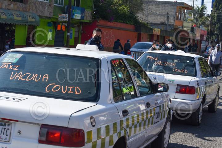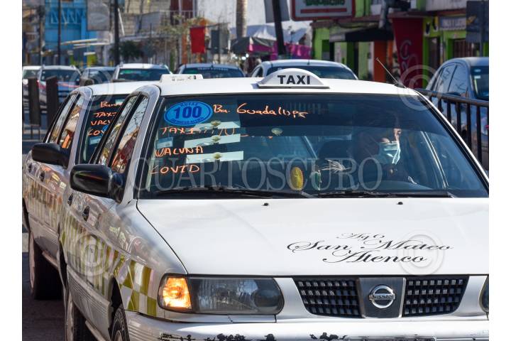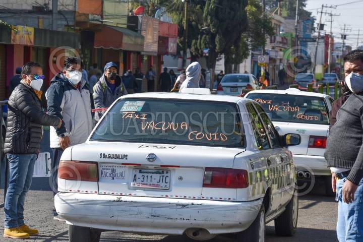 Taxis de San Mateo Atenco transportaron de manera gratuita a las personas de la tercera edad para que fueran vacunados contra COVID-19.
