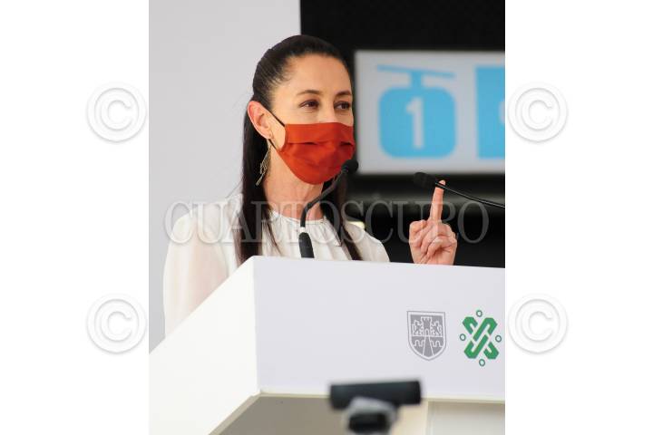 Claudia Sheinbaum, jefa de gobierno de la capital, durante el acto protocolario de la inauguración del Cablebús.