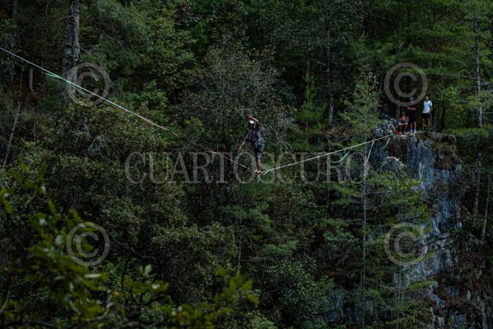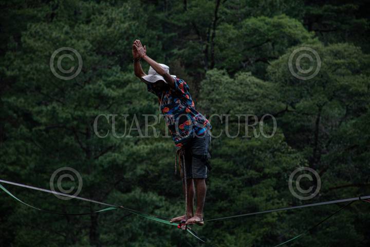 El argentino Juan Manuel Hernández cruzó por la cuerda de floja a más de 100 metros de altura en el Parque El Arcotete.