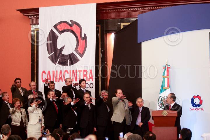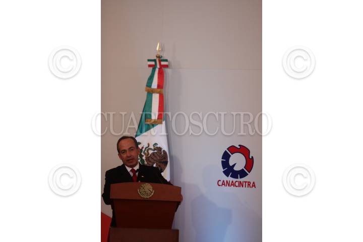 MÉXICO, D.F., 24MARZO2009.-Felipe Calderon Hinojosa Presidente de México durante la toma de protesta de la nueva mesa directiva de la Camara Nacional de la Industria de Trasformación FOTO: SÁSHENKA GUTIERREZ/CUARTOSCURO.COM