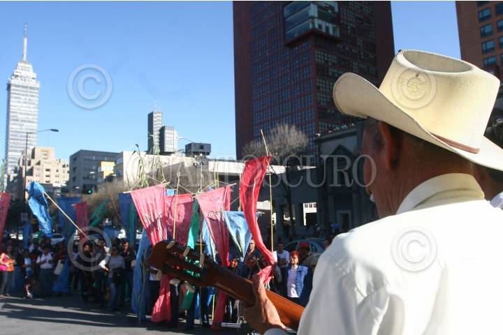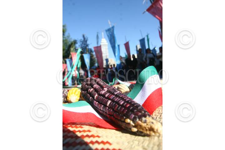 MÉXICO D.F., 25FEBRERO2009.- Campesinos de la organización Río Crecido de Santiago Tuxtla Veracruz, se manifestaron en el Hemiciclo a Juárez exigiendo no se venda maíz transgénico en el país y un precio justo en la venta del grano que siembran en su entidad. FOTO: SAUL LOPEZ/CUARTOSCURO.COM