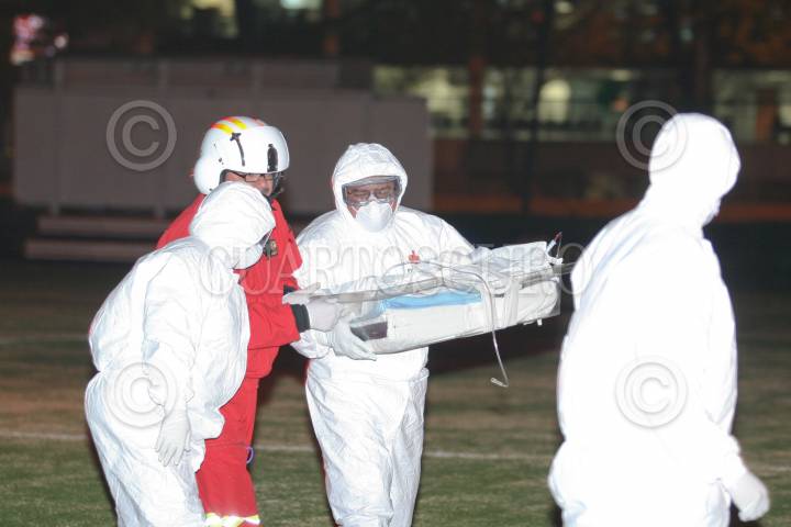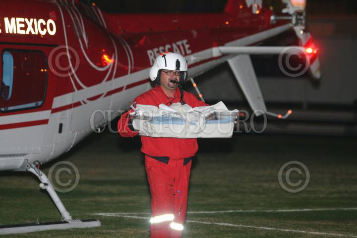 MÈXICO, D.F., 01DICIEMBRE2010.- Está madrugada los paramédicos del Helicoptero Relampagos de Estado de México trasladó a una bebe con Meningitis Fibrosa (Virus altamente contagioso) desde el municipio de Amecameca al Hospital Central Militar. Para evitar algún contagio los paramédicos de la Cruz Roja. FOTO: LM ACEVEDO/CUARTOSCURO.COM