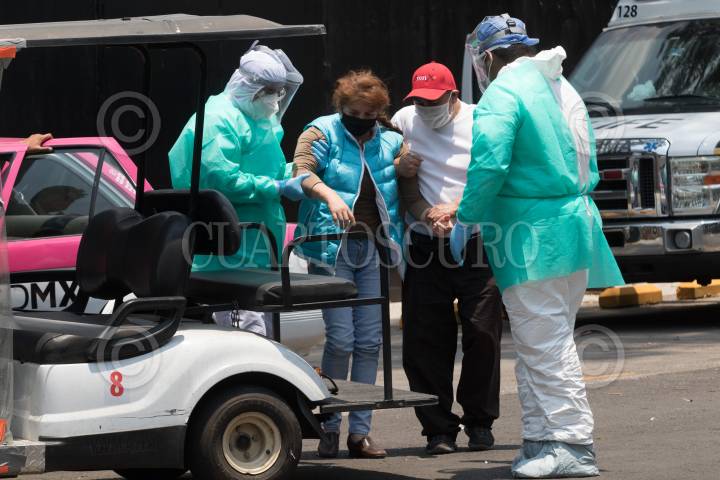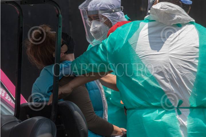 Una mujer con visibles problemas para respirar fue ingresa al Hospital de Expansión de Covid-19