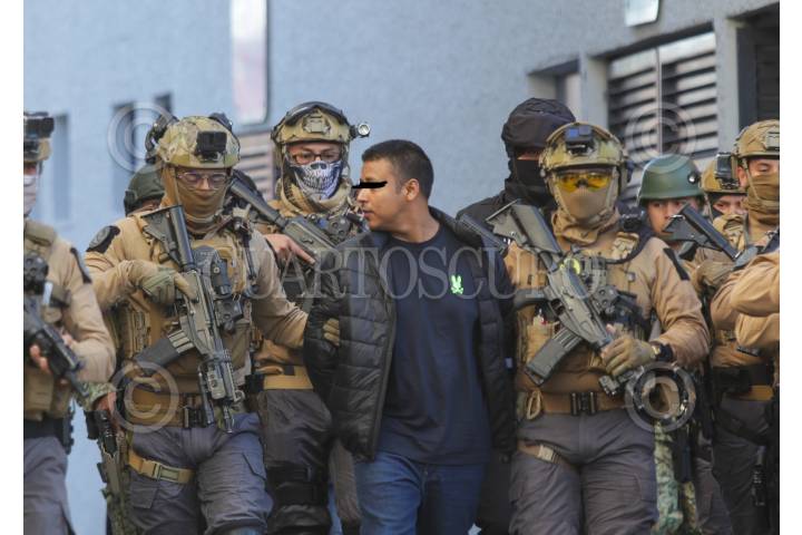 CIUDAD DE MÉXICO, 12SEPTIEMBRE2025.- Operativo de seguridad en la Fiscalía Especializada en materia de Delincuencia Organizada (FEMDO) para el traslado de Alejandro "N", alias El Choko rumbo a un penal de alta seguridad en el Estado de México, acusado presuntamente de extorsiones, homicidios y despojo de propiedades por parte del grupo delictivo "La Chokisa". FOTO: MARIO JASSO/CUARTOSCURO.COM
