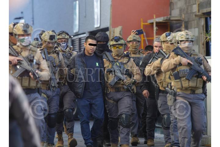 TOLUCA, ESTADO DE MÉXICO, 07FEBRERO2025.- Derivado de las acciones del Operativo Enjambre fue detenido en Valle de Bravo Pedro Luis “N” alias “Wicho” ex presidente municipal electo de Santo Tomás de los Plátanos, quien se dio a la fuga después de rendir protesta, está acusado de diversos delitos entre ellos nexos con el crimen organizado. Fue trasladado a la FGJEM y posteriormente a un penal mexiquense. FOTO: CRISANTA ESPINOSA AGUILAR /CUARTOSCURO.COM