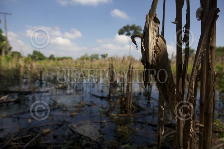 VILLAHERMOSA, TABASCO, 12OCTUBRE2013.- Las lluvias en territorio tabasqueño han provocado que varias cientos de hectáreas de cultivo de maíz se pierdan en el campo de cultivo, ya en algunos municipios el desborde del río Usumacinta también esta dañando la agricultura no solo de este grano, si no también en la papaya, plátano, chile y frijol; la imagen corresponde a una parcela ubicada en la ranchería Torno Larga tercera sección sobre el kilómetro seis y medio de la carretera vieja interestatal que conduce de la capital hacia el municipio de Jalapa. Por otra parte, las autoridades federales como SAGARPA y SEMARNAT, fueron advertidas por el Juzgado Federal Décimo Segundo de Distrito en Materia civil del Distrito Federal una medida precautoria en la que ordeno no otorgar permisos a transnacionales para la siembra de maíz transgénico. FOTO: MARCO POLO GUZMÁN HERNÁNDEZ /CUARTOSCURO.COM