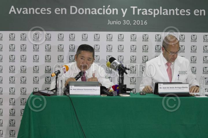 CIUDAD, DE MÉXICO, 30JUNIO2016.- José Alfonso Yamamoto Nagano, coordinador nacional de donación y transplantes del IMSS, y José de Jesús Arriaga Dávila, director de prestaciones médicas del IMSS, durante la presentación de avances del "Programa de Donación y Trasplante de Órganos", en el Hospital de Pediatría del Centro Médico Nacional. FOTO: MOISÉS PABLO /CUARTOSCURO.COM