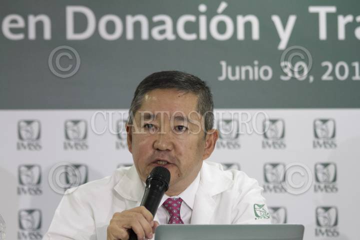 CIUDAD, DE MÉXICO, 30JUNIO2016.- José Alfonso Yamamoto Nagano, coordinador nacional de donación y transplantes del IMSS, durante la presentación de avances del "Programa de Donación y Trasplante de Órganos", en el Hospital de Pediatría del Centro Médico Nacional. FOTO: MOISÉS PABLO /CUARTOSCURO.COM