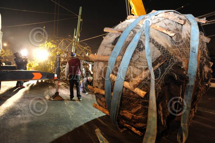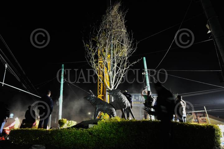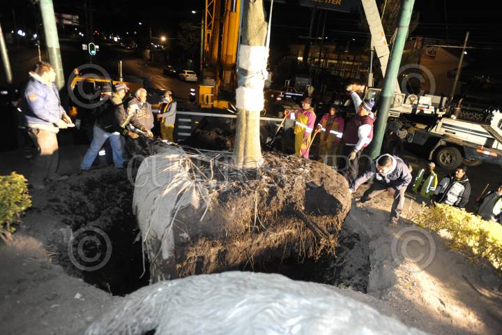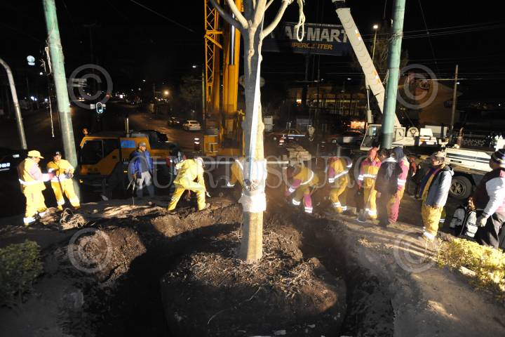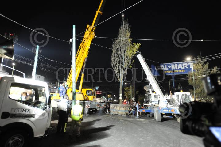 CIUDAD DE MÉXICO., 11ENERO2017.- Un árbol nogal de 30 metros aproximadamente, fue trasplantado de un vivero de Xochimilco a la glorieta de los coyotes, ubicada en el cruce de avenida Universidad y Miguel Ángel de Quevedo. Por varias horas laboro personal de la Delegación Coyoacán con grúas, para la plantación de dicho árbol. FOTO: LUIS CARBAYO /CUARTOSCURO.COM