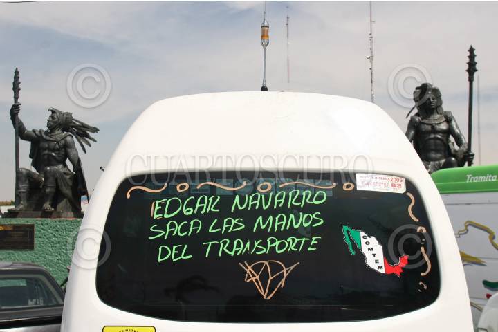 CIUDAD NEZAHUALCOYOTL, ESTADO DE MÉXICO, 14MAYO2010.- Transportistas de la ruta 65 se manifestaron sobre la avenida Pantitlán exigiendo la destitución de Carlos Miguel Perez López administrador de la ruta. FOTO: SAÚL LÓPEZ/CUARTOSCURO.COM