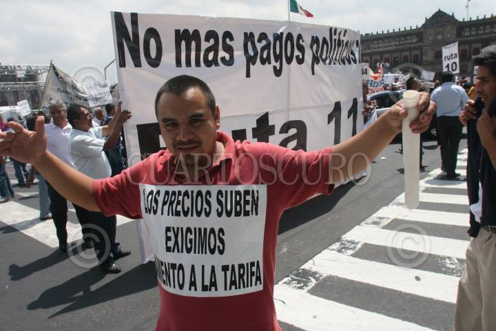 MÉXICO, D.F., 28JULIO2010.- Transportistas de rutas del sistema de trasporte metropolitano, se manifestaron frente a las oficinas de gobierno del Distrito Federal, exigiendo aumento de tarifas y se niegue la entrada de la linea ADO al trasporte público. FOTO: SAÚL LÓPEZ/CUARTOSCURO.COM