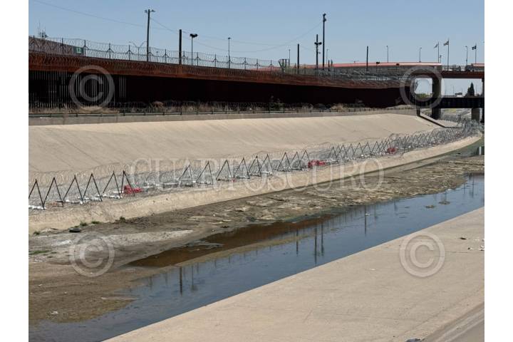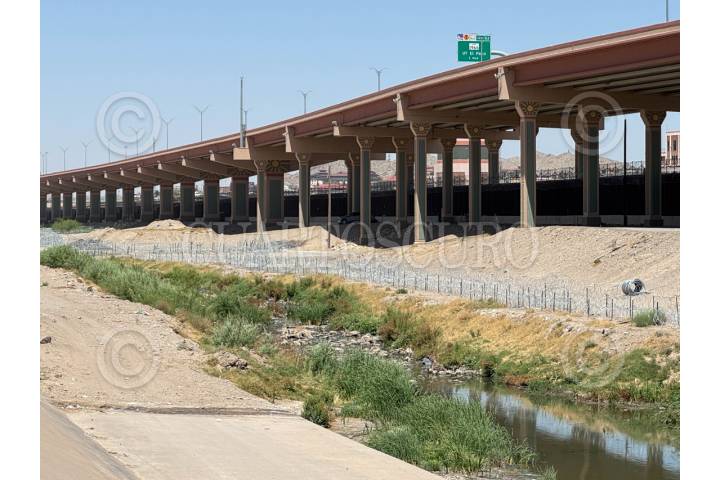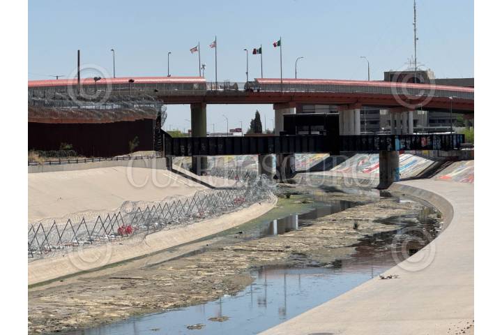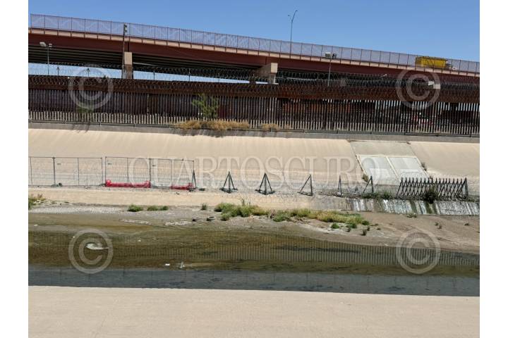 CIUDAD JUÁREZ, CHIHUAHUA, 16ABRIL2025.- El río Bravo luce seco en el tramo fronterizo entre Ciudad Juárez y El Paso, en medio de tensiones por el cumplimiento del Tratado de Aguas de 1944. La sequía agrava la presión sobre este recurso compartido. FOTO: CARLOS SÁNCHEZ COLUNGA/CUARTOSCURO.COM