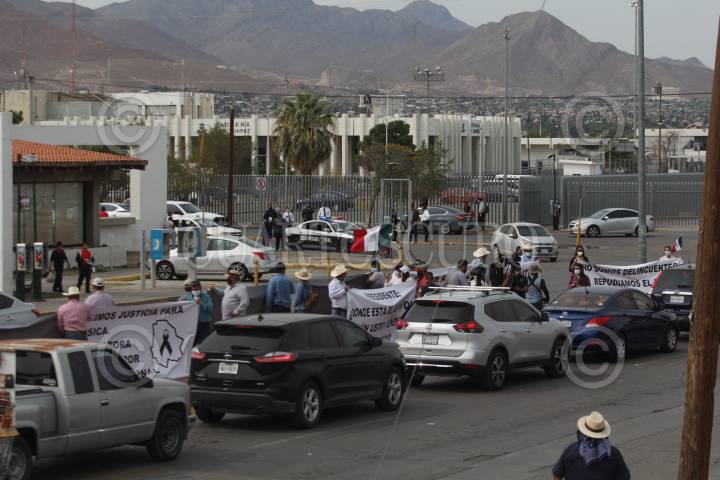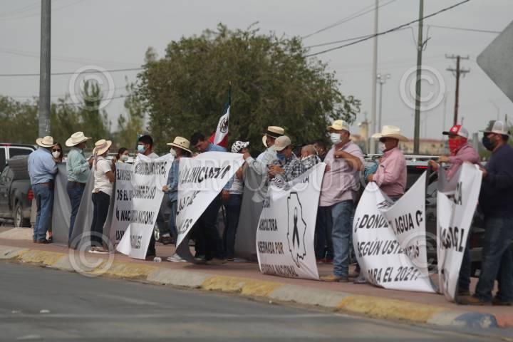 Protesta de agricultores del Valle de Juárez en apoyo a los manifestantes de la presa de la Boquilla por el tratado de aguas con Estados Unidos.