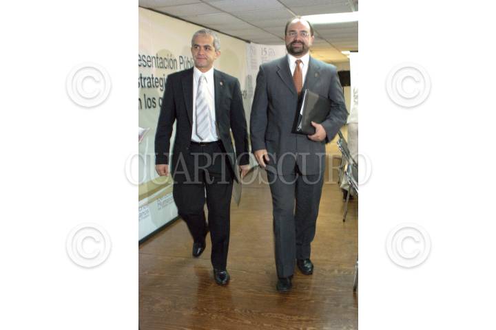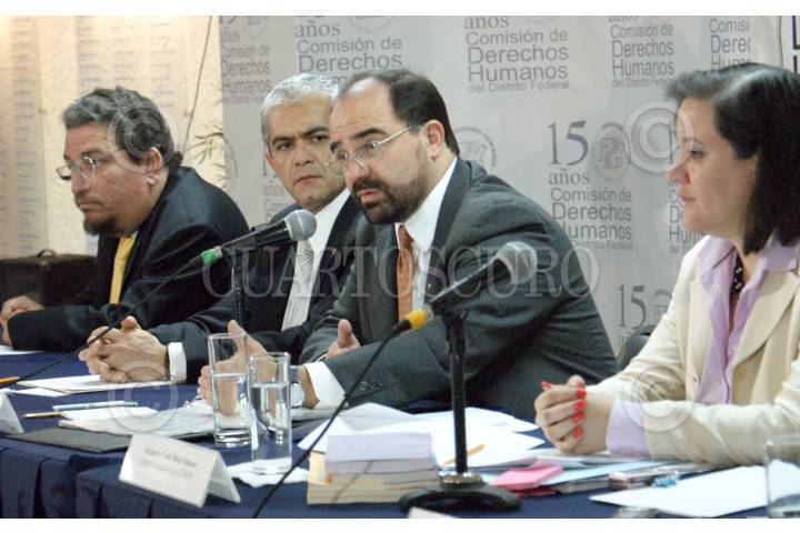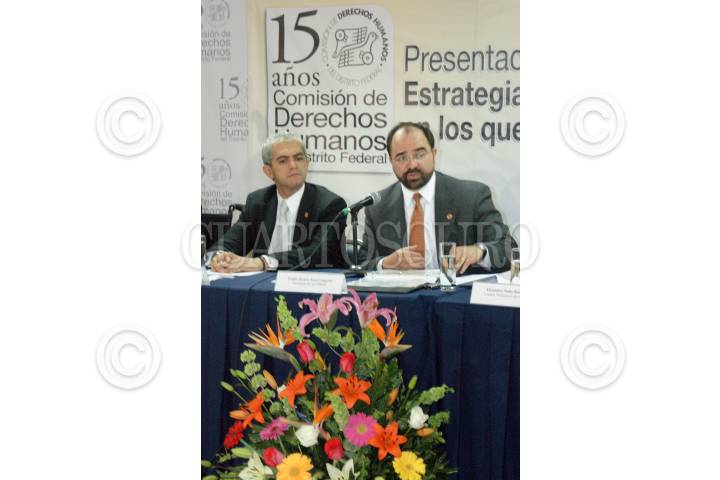 MÉXICO, D.F., 16FEBRERO2009.- Emilio Alvarez Icaza acompañado del procurador capitalino en la presentación pública de la ¨Politica, a trevés de la cual se implementara la estrategia para la atención de casos de tortura en los que se denuncia tortura en la Comisión de Derechos Humanos del D.F. FOTO: VICTORIA VALTIERRA/CUARTOSCURO.COM