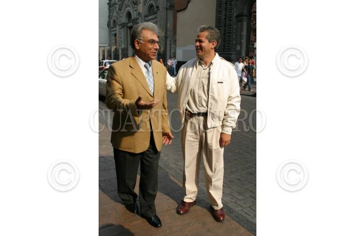 MEXICO, D.F. 08MAYO2005.- Fawzi Yousif, embajador de Palestina en México, y Alfredo Rojas Díaz Duran, integrante de la Conferencia Internacional por la Paz, anunciaron los avances de las plàticas con Israel. FOTO: Sandra Perdomo/CUARTOSCURO.COM