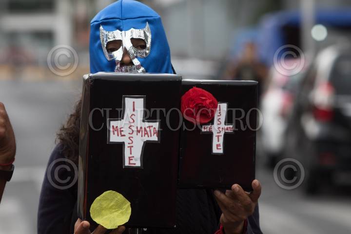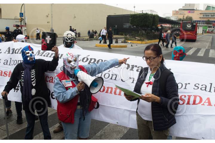 CIUDAD DE MÉXICO, 13JUNIO2019.- A unos metros del edificio central del ISSSSTE en la colonia Buenavista enfermos de SIDA/VIH se manifestaron, los inconformes colocaron varios pequeños féretros de cartón y bloquearon las avenidas adyacentes al inmueble, esto en protesta por que aseguran que los médicos del instituto les quieres reducir las dosis en sus medicamentos, un ejemplo, es que antes les recetaban una cápsula de 600 miligramos y hoy les están ofreciendo una de 400 miligramos, advirtiendo que un variación en los tratamientos que reciben puede ser mortal para ellos. También dijeron que otro denuncia es el desabasto intermitente de algunos medicamentos. FOTO: MOISÉS PABLO /CUARTOSCURO.COM