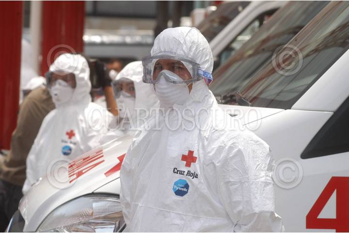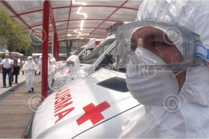MÉXICO, D.F., 04MAYO2009.-Personal de la cruz Roja mexicana, porta los trajes que fueron donados por el Gobierno Español, esto es con el fin que el personal médico que labora en la institución no se contagie al tratar con pacientes que tienen el virus de la influenza humana FOTO: LUIS CARBAYO/CUARTOSCURO.COM