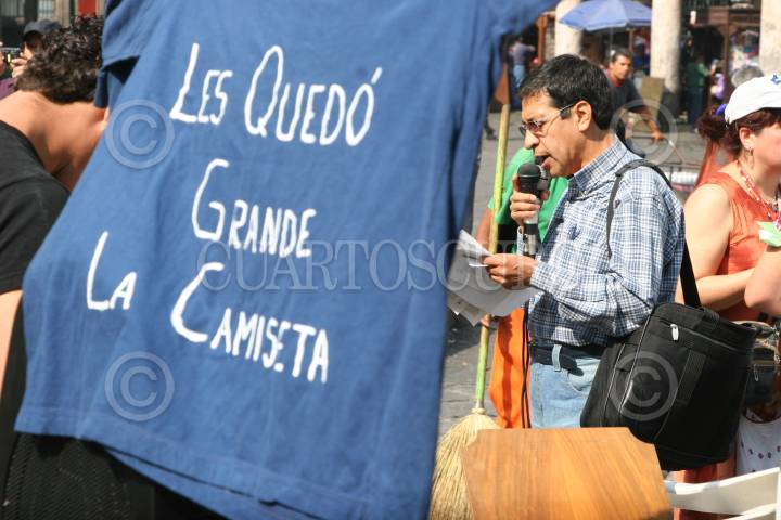 MÉXICO, D.F., 29MAYO2009.- Trabajadores de la empresa radiofónica "Radio Educación se Manifestaron a las afueras de la Secretaria de Educación Publica esto en protesta por la violación a la libertad de expresión ya que según ellos durante la epidemia de la influenza humana el gobierno federal impidió que a esta radio difusora tratar el tema con libertad. FOTO: RICARDO CASTELAN/CUARTOSCURO.COM
