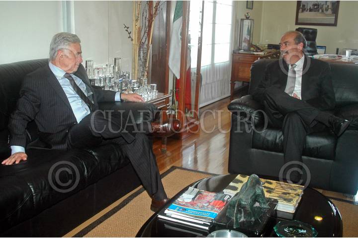MORELIA, MICHOACAN, 14MAYO2010.- Fernando Gómez Mont secretario de Gobernación tuvo una reunión con el gobernador de Michoacán Leonel Godoy Rangel para tratar temas del combate al crimen organizado, tras el ataque que sufriera la secretaria de Seguridad Pública Minerva Bautista Gómez. FOTO: LEOVIGILDO GONZÁLEZ/CUARTOSCURO.COM