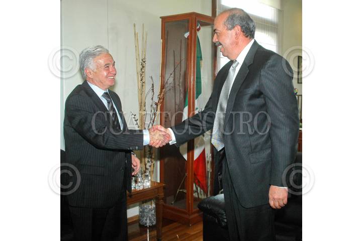 MÉXICO, D.F., 06OCTUBRE2009.- Demetrio Sodi, delegado en Miguel Hidalgo saluda a José Ángel Ávila Pérez secretario de Gobierno durante la reunión para tratar las relaciones que tendrán en los próximos tres años. FOTO: CUARTOSCURO.COM