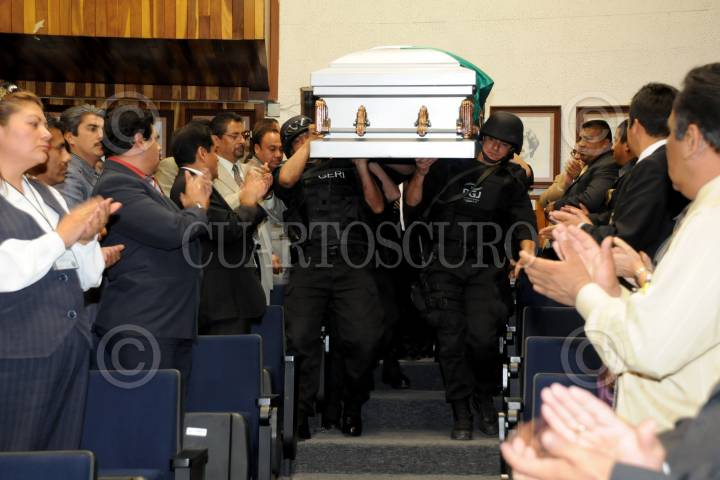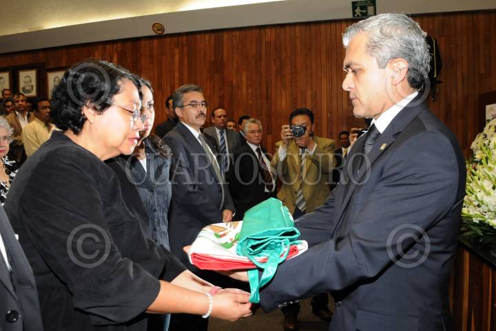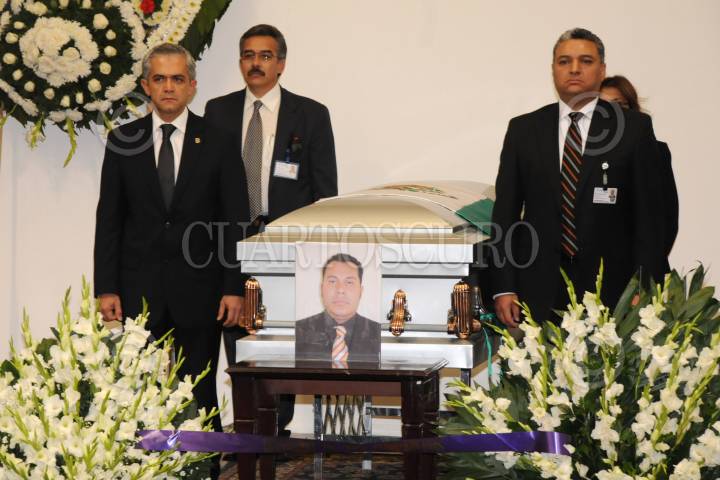 MÉXICO D.F., 12MARZO2010.- El procurador del Distrito Federal Miguel Ángel Mancera, encabezó esta mañana el homenaje que realizaron al agente de la policía judicial Luis Sentéis Mayo quien perdió la vida al tratar de impedir el asalto a un autobús en el perímetro de la Delegación Gustavo A. Madero. FOTO: LUIS CARBAYO/CUARTOSCURO.COM