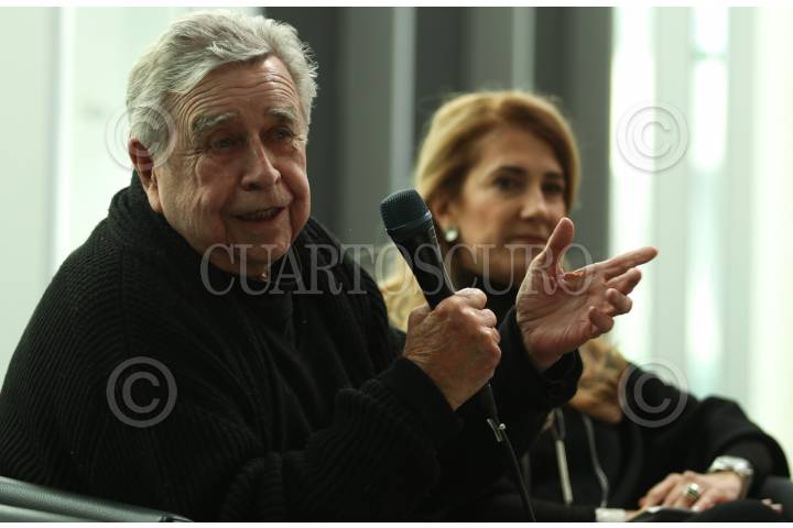 CIUDAD DE MÉXICO, 03DICIEMBRE2019.- El artista plástico zacatecano Manuel Felguérez encabezó la conferencia de prensa, así como el recorrido a medios de la exposición "Manuel Felguérez. Trayectorias", en el Museo Universitario de Arte Contemporáneo. FOTO: GALO CAÑAS /CUARTOSCURO.COM