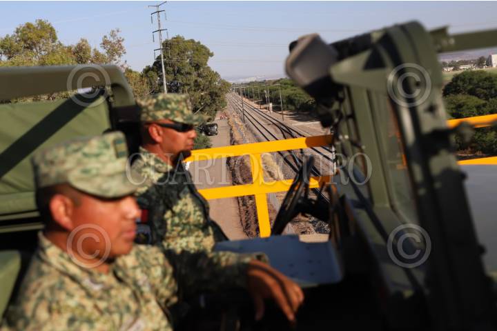 PEDRO ESCOBEDO, QUERÉTARO, 27ABRIL2025.- Elementos del ejército se retiran de la zona de obras del Tren CDMX-Queretaro, las cuales dieron inicio este domingo. FOTO: DANIEL AUGUSTO/ CUARTOSCURO.COM