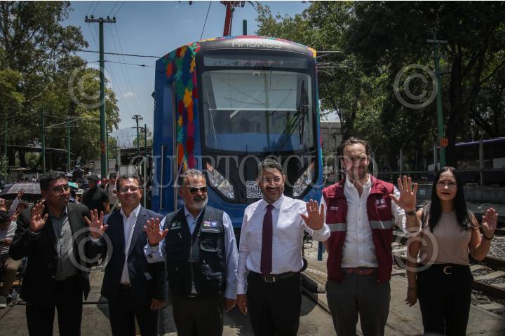 CIUDAD DE MÉXICO, 24DICIEMBRE2024.- El gobierno capitalino realizó la entrega de tres trenes rehabilitados del Tren Ligero. FOTO: MARIO JASSO/CUARTOSCURO.COM