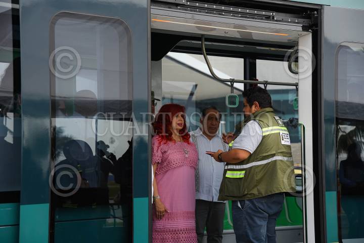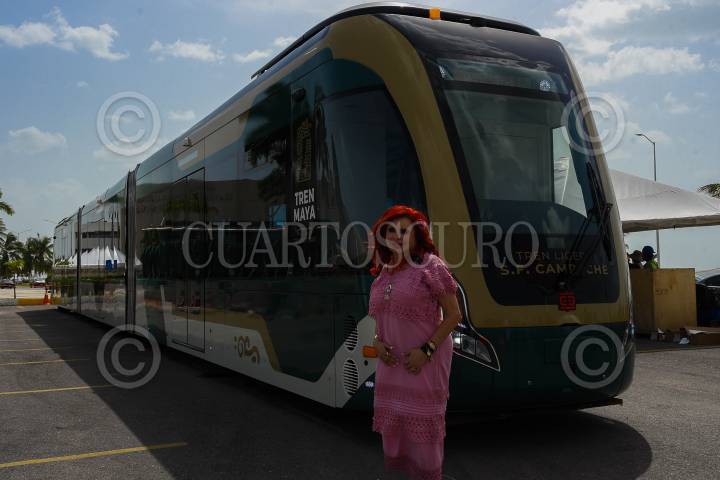 CAMPECHE,CAMPECHE 20 DE JULIO 2025.-Layda Sansores, gobernadora de Campeche, encabezó el inició operaciones el Tren Ligero en Campeche, que tuvo una inversión de 4 millones de pesos. Esta nueva opción de transporte conecta la estación del Tren Maya con el Centro Histórico a través de 15 estaciones. El sistema contará con cuatro trenes que recorrerán antiguos trazos ferroviarios, donde hubo una remodelación atravesando zonas como La Ermita, Cuatro Caminos y Héroe de Nacozari. FOTO: MICHAEL BALAM/CUARTOSCURO.COM