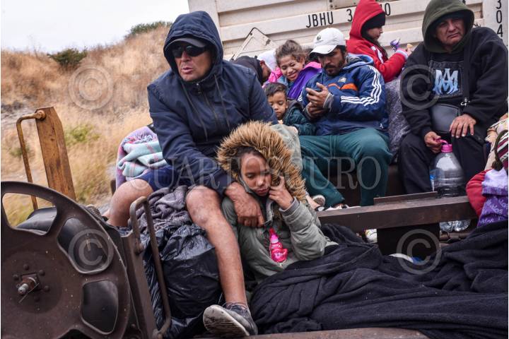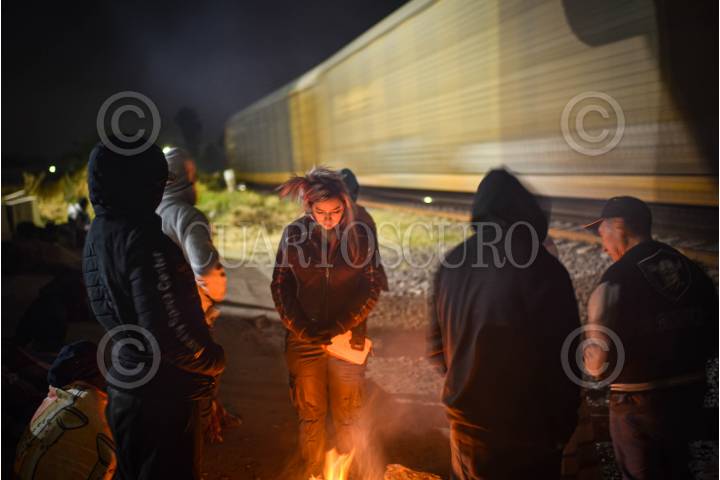 CAMARGO, CHIHUAHUA , 18DICIEMBRE2024.- Soportando temperaturas bajas y enfrentándose a todo tipo de adversidades en el camino, migrantes, en su mayoría provenientes de Venezuela, viajan a bordo de trenes con dirección al norte del continente. FOTO: PEDRO ANZA /CUARTOSCURO.COM
