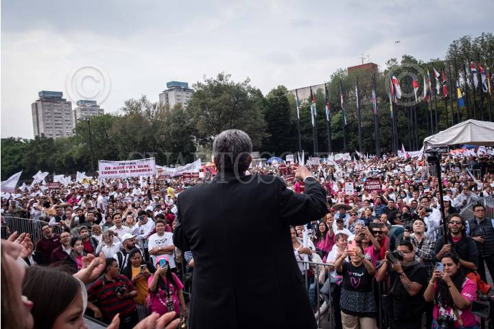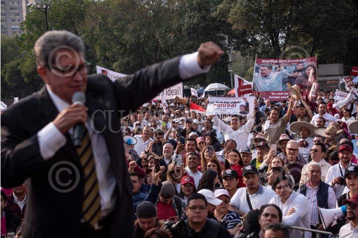Ricardo Monreal, aspirante a la candidatura presidencial por parte de MORENA, ofreció hoy a sus simpatizantes una asamblea informativa en la Plaza de las Tres Culturas.